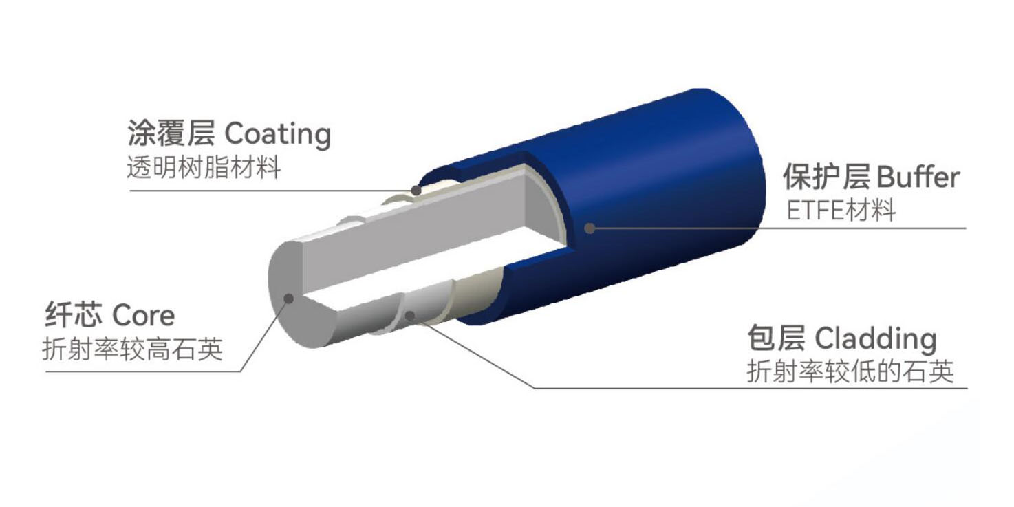 优选四层结构光纤材料,弯曲不易折损