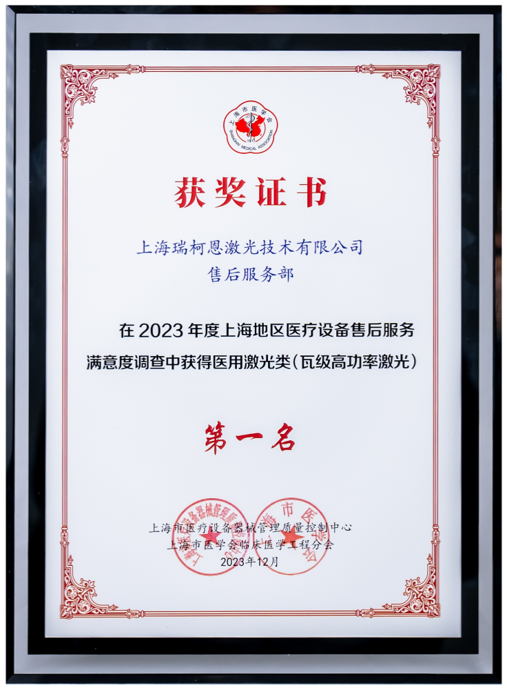 388vip太阳集团连续两年荣获中国医疗设备“优秀民族品牌金奖” 和“医用激光产品线第一名”(包括保有率、综合满意度、意向复购率、净推荐值、培训满意度核心指标的第一名)。在2023年度上海地区医疗设备售后服务满意度调查中获得医用激光类(瓦级高功率激光)第一名。
